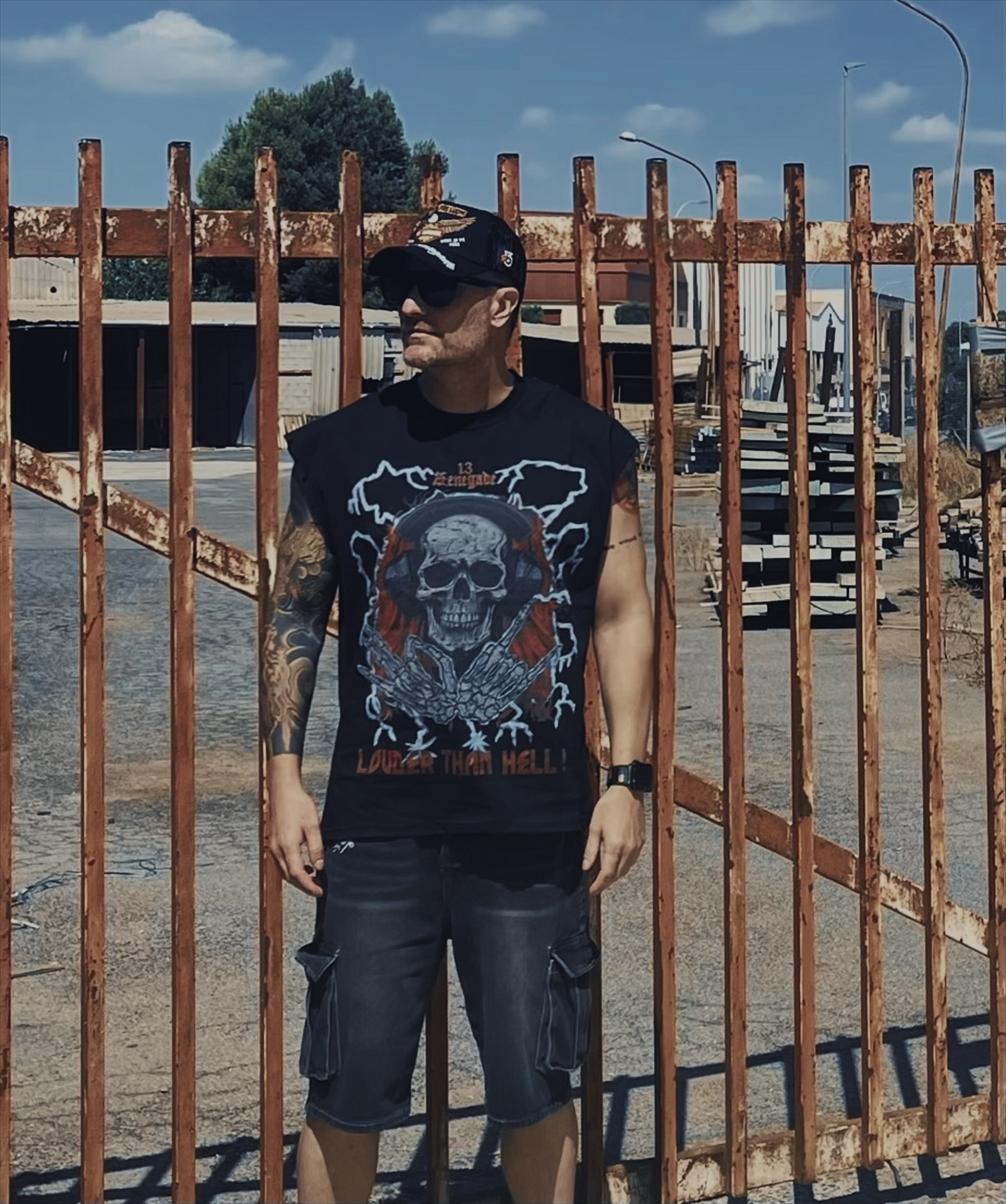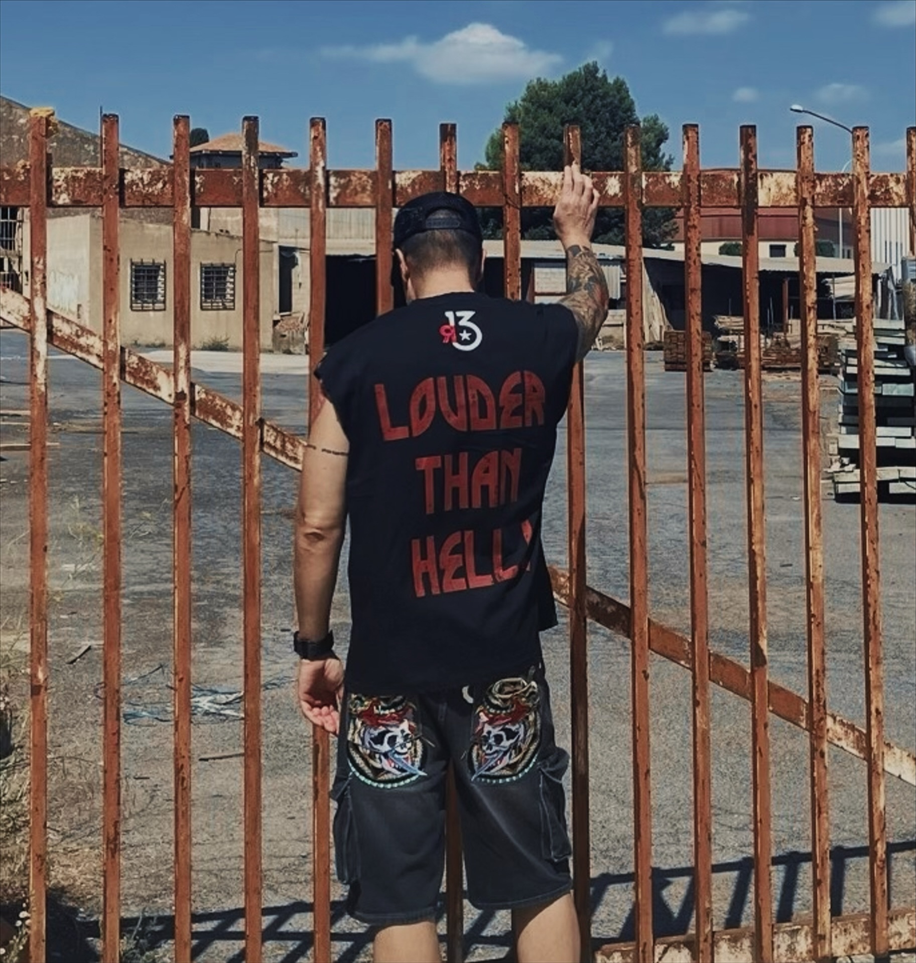 Camiseta sin mangas con impresión a gran escala en la parte frontal, logo de la firma bordado en la nuca, impresión a gran escala en la parte trasera y microabrasiones con efecto desgastado en el cuello, bocamanga y dobladillo.